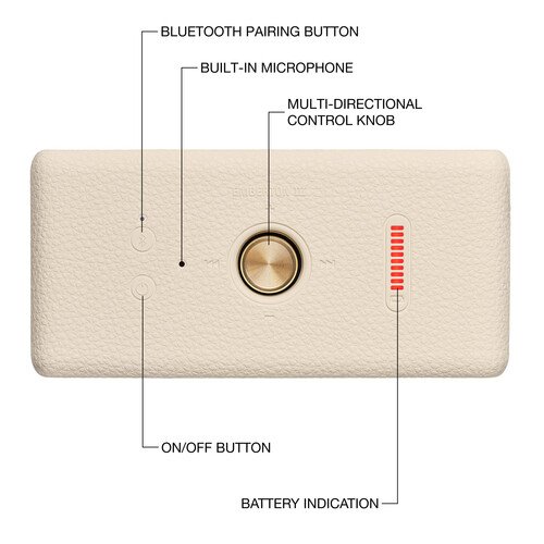 А завдяки новітньому з’єднанню Bluetooth, збільшеному терміну служби батареї та фірмовій естетиці Marshall, акустика Marshall Portable Speaker Emberton III стане вашим улюбленим динаміком для прослуховування музики та вираження себе, куди б вас не занесло життя.