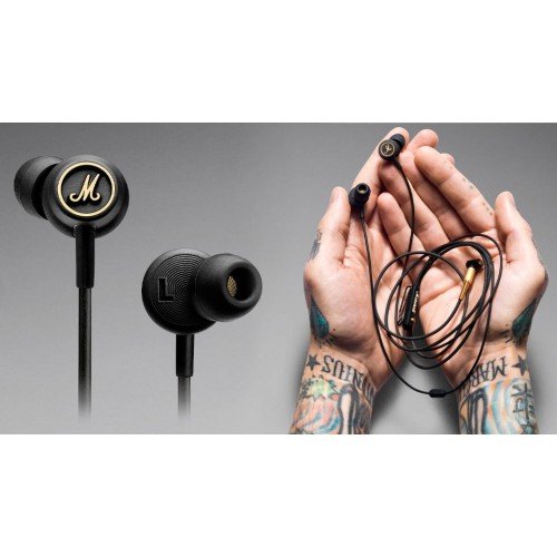 Завдяки 9-мм драйверам, Marshall Mode EQ забезпечують чистий звук без спотворень, а динамічні баси і ясні високі частоти створюють неповторну атмосферу. Вбудований мікрофон дозволяє спілкуватися, не витягуючи телефон з кишені, а зручність використання забезпечує спеціальний кабель, який не плутається і не рветься. Ви отримаєте 4 пари змінних силіконових насадок, що дозволяють підібрати ідеальне прилягання до вуха.